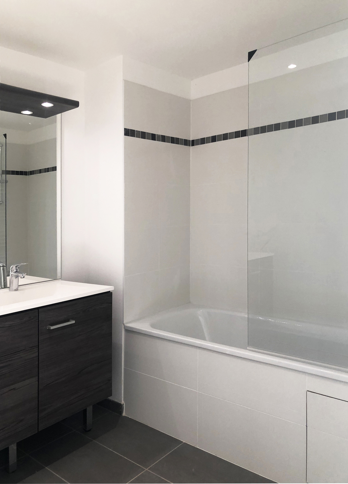 Dans le collectif, les plus petites typologies (T2) sont installées à l’angle Nord-Ouest du bâtiment, les plus grands types tenant les autres angles pour s’assurer de ne jamais se trouver défavorablement orientés.