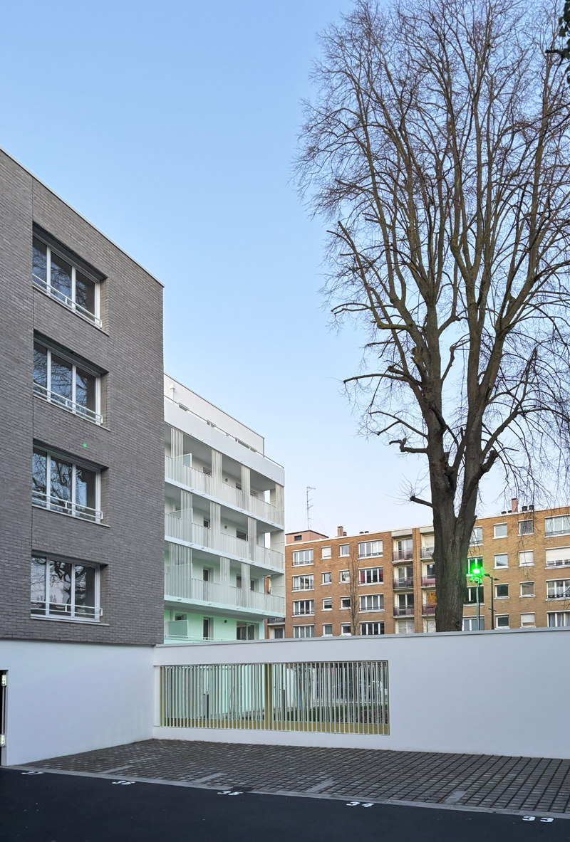 Ainsi, ce projet entend s’intégrer au sein de son quartier, en apportant une variation dans le front bâti existant, aujourd’hui dense, et ainsi donner un nouvel aspect à la rue. Il cherche également à offrir à chaque logement une qualité en obtenant la certification NF Habitat : chaque appartement est pensé pour son confort d’été et d’hiver, et les grands types se placent systématiquement aux angles afin de bénéficier de doubles orientations.